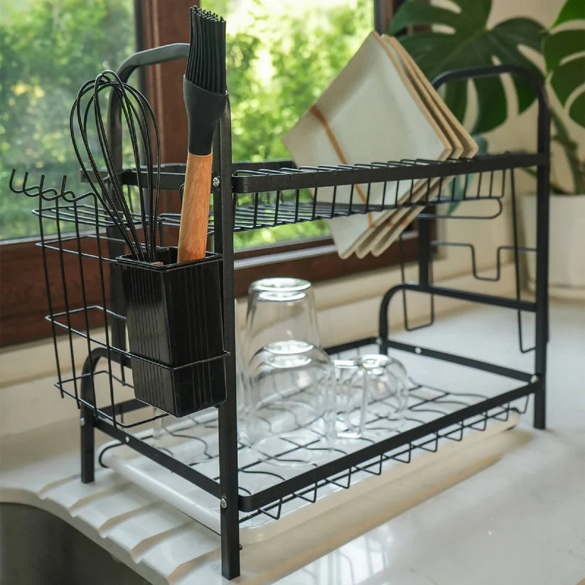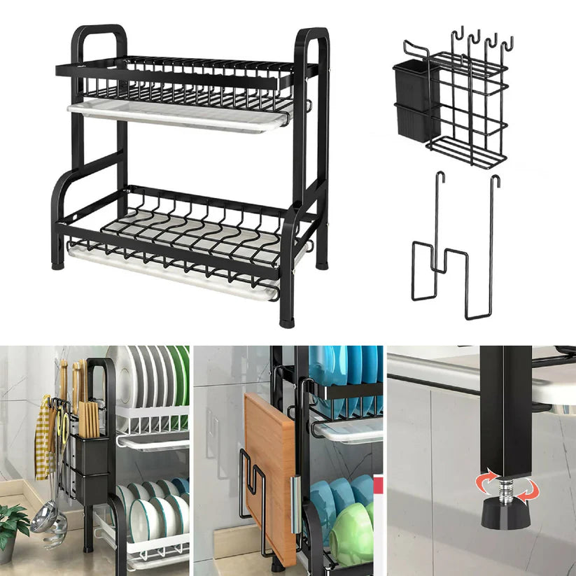 Optimiza el espacio en tu cocina con el Secaplatos Escurridor de 2 niveles de capacidad para 17 platos. Este ingenioso accesorio te permite organizar tus platos en la parte superior y vasos, tazas y utensilios en la parte inferior, maximizando la eficiencia y el orden en tu cocina.